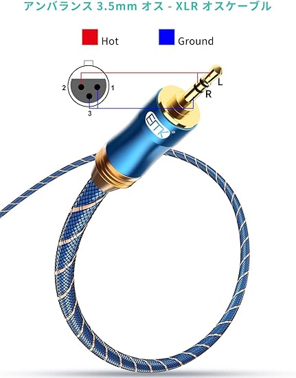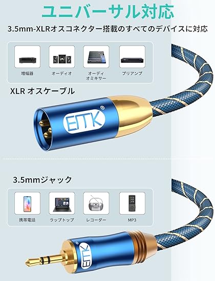 3.5mm to xlr EMK xlr 3.5mm 変換,3.5mm TRS-XLR ステレオ(オス) to XLR (オス)変換ケーブル マイクケーブル タブレット、ノートパソコン、マイクロフォン、アンプ対応-ブルー(3M) a | PCBASE