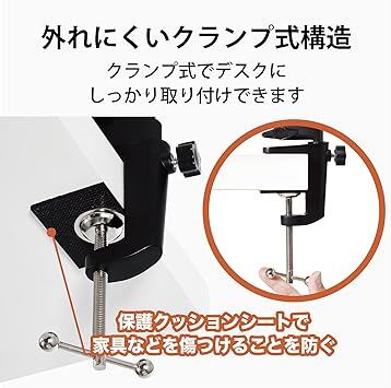 付属の保護クッションシートを家具の裏などに貼ることにより、クランプの金属部分が直接触れて家具などを傷つけることを防ぎます。