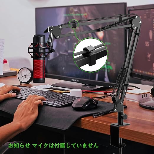 「安定性」丈夫な金属製のHyperXマイクブームアームは、各カンチレバーのデュアルサスペンションブームシザーアームスタンドスプリングが、たるみ、落下、揺れなしにHyperXマイクを所定の位置に保持します。