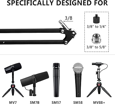 Geekria for Creators マイクアーム シュア Shure MV88+、SM7B、MV7、MV7X、SM57 に対応,マイクブームアームマウントアダプター、サスペンションスタンド、デスクマウントホルダー a | PCBASE