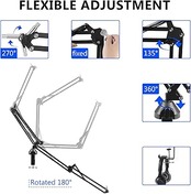 デスクトップマイクアームは厚さ6cmまでのテーブルや机に設置可能、360度回転できるもの。