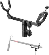 【5/8"タッズライトスタンド用】このマイクブームサポートホルダーは、5/8"スタッドを使用してライトスタンドに直接固定でき、ハンズフリーブーム操作が可能です。