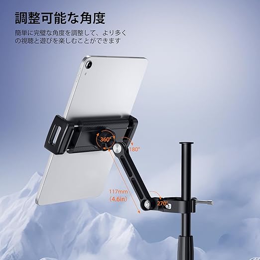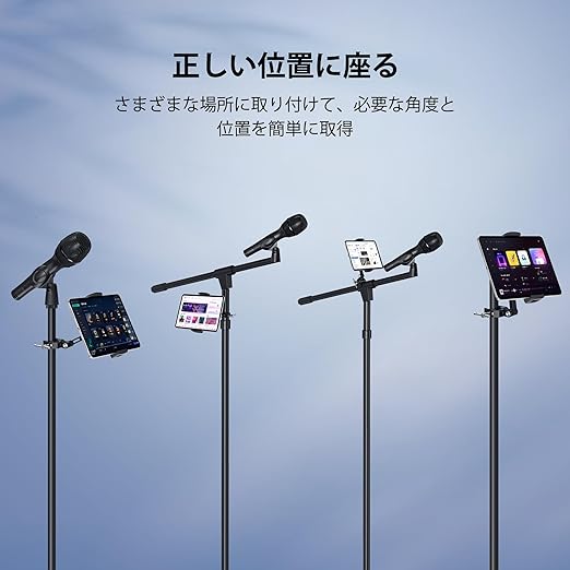 マイク音楽スタンドの設計:ライブでタブレットを使って楽譜を見ることが一般的になってきており、このマイク音楽タブレットスタンドはそのために設計されています。iPadをマイクスタンド、ハンガー、譜面台、シンバル台の任意の位置と角度に簡単に接続します。合唱授業、結婚式、コンサート、パーティー、会議などの場で音楽を披露し、共有するために使用されることができます。