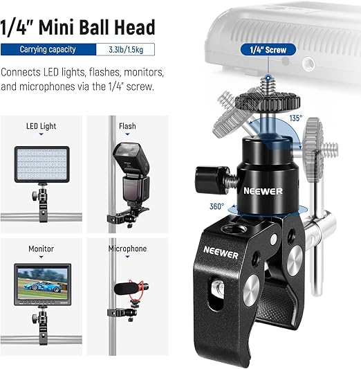 NEEWER カニクランプ 関節式ミニボール ヘッド 1/4"から5/8"ネジ付き マイクに対応 耐荷重:1.5 kg (ST48) a