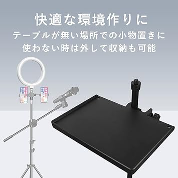 【快適な環境作りに】ライブ演奏や講演会でのスピーチ、音楽制作、ライブ配信などにお使いいただけるマイクスタンドトレーになります。小物を置くことができ、テーブルが無い場所でも小物を置くことができます。