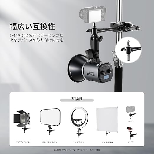 NEEWER スーパークランプ 15cm延長アーム付き 丸柱/平面用 5/8"スタッド/2.4"ジョーグリップ付き 高耐久 クラブポールクランプ カメラクランプマウント スマホマウント 写真スタジオカメラ&照明マウント用 最大荷重15kg UA048 a | PCBASE