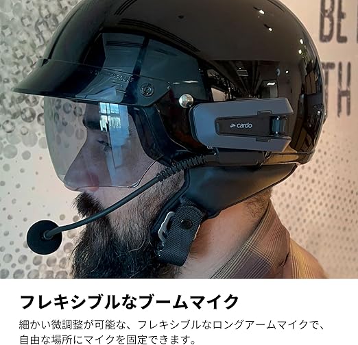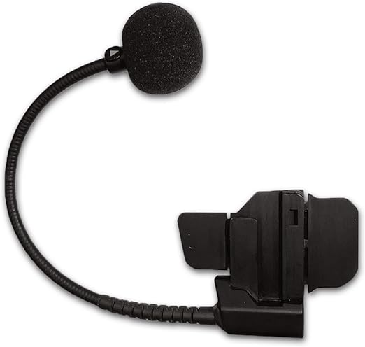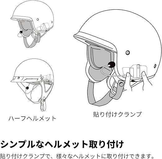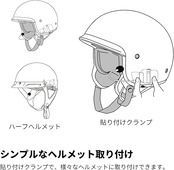クランプ一体型アームマイク:ロングアームマイク本体が貼り付けクランプと一体になっており、そのままヘルメットに貼り付けて固定できます。