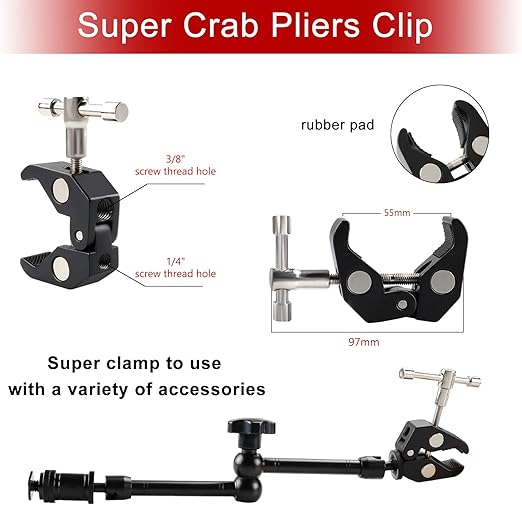 TECDW 11インチ調節可能マジックアーム、スーパークランプ、360°ボールヘッド、1/4インチと3/8インチのネジ穴付き関節式マジックアーム、三脚、LEDライト、モニター、フラッシュライト、カメラ用マジックアームクランプ (S) a | PCBASE