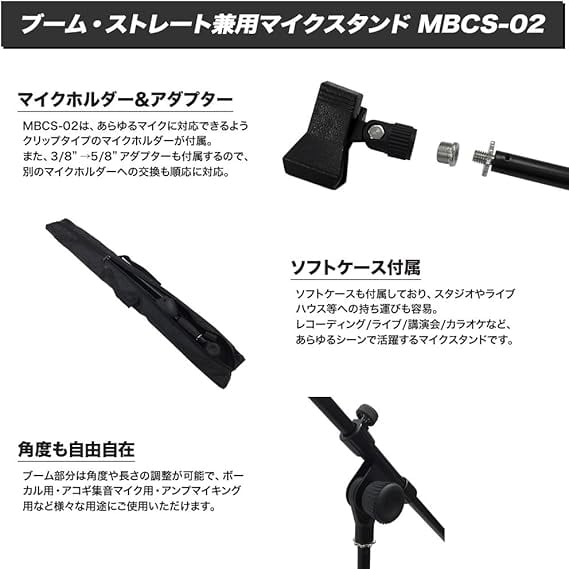 ソフトケース/クリップ型マイクホルダー/マイクホルダー変換アダプター(3/8"→5/8")付属