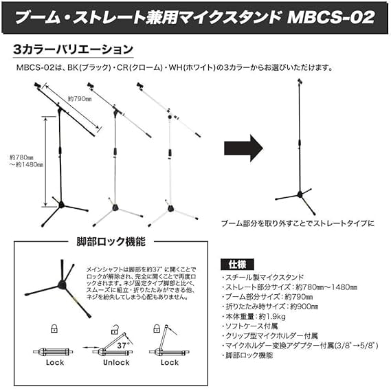 ブーム部分を取り外すことでストレートタイプマイクスタンドとしても使用可能
