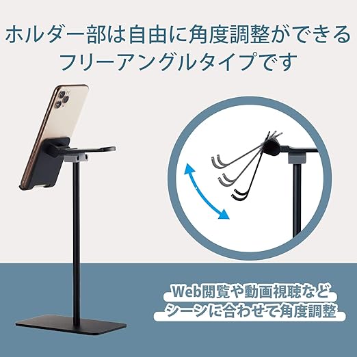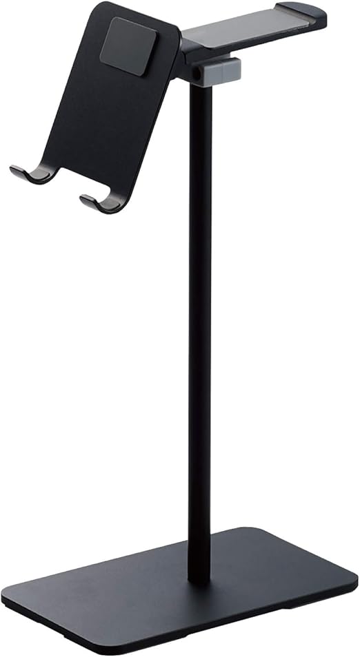 スマートフォンとヘッドホンを同時に設置・収納できるスマートフォン対応のヘッドホン用アルミスタンドです。