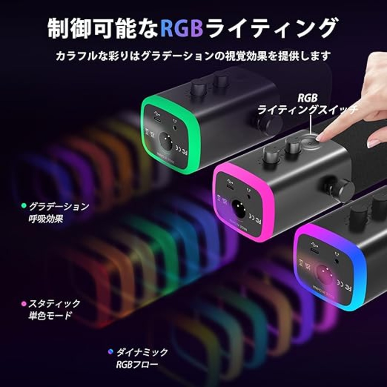 FIFINE ダイナミックマイク XLR USB接続 ゲーミングマイク 配信用 ゲーミング 単一指向性 PC パソコン プレステ ミキサー対応 ライブ配信 ゲーム実況 録音用 音量調節 ミュート機能 RGBライト ヘッドホン端子付き 黒 AmpliGame AM8 a