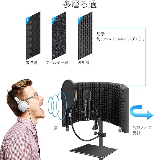 【録音専用】:マイクカバー内部に脱脂綿材を採用し、録音中に人の声と楽器の明瞭さを保ち、音波と外界環境の干渉を解消した。 マイクセパレータカバーは良質の鋼材でできており、より強固で耐久性があり、傷に強い。