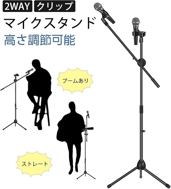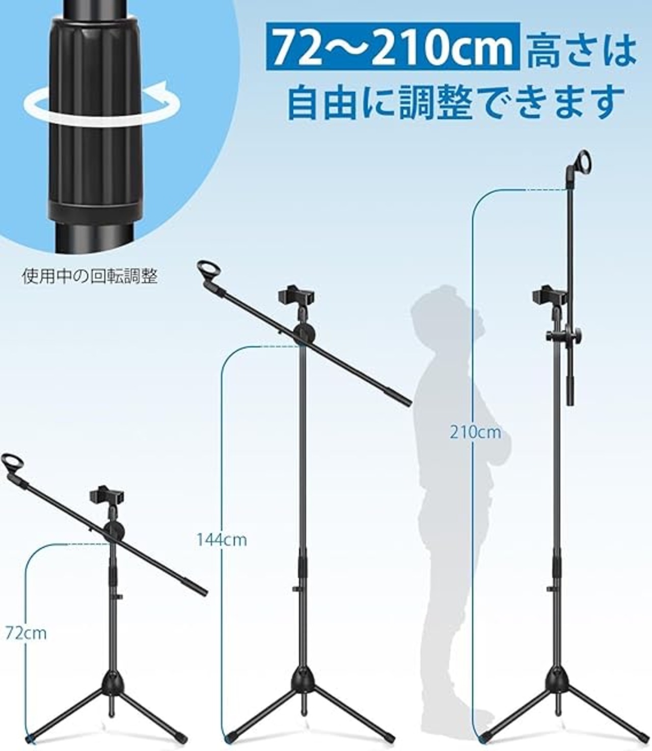 EmJTao マイクスタンド 折りたたみ式マイクスタンドブーム 180°調整可能 演奏 会議 スピーチ 講習 ライブスピーチ 忘年会 カラオケ 録音 ポータブル三脚スタンド マイクホルダー×2 ケーブルクランプ×4 収納袋付き a | PCBASE
