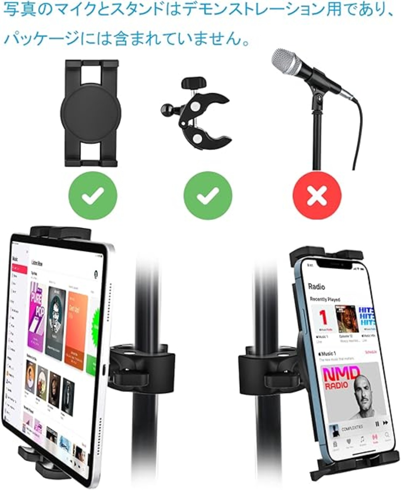 EXSHOW マイクタブレット 携帯電話スタンド マイクスタンド 滑り止め クランプ式 マイク譜面台ipadスタンド C-クランプ設計 音楽スタンドとブームポール取り付け iPhoneスタンドホルダー 360度回 自由調節 日本語説明書付き タブレットとスマートフォン両用4〜13インチ全機種対応 iPad Pro 9.7 11 12.9 インチ/iPad Air Mini/iPhone a | PCBASE
