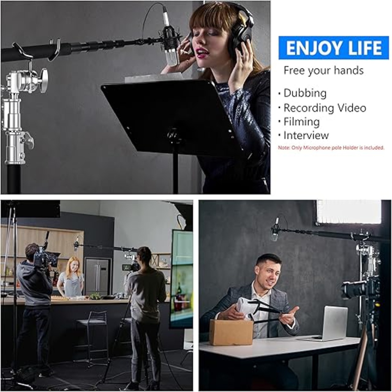 ハンズフリーポジショニング:このマイクブームホルダーを使用して、マイクブームをCスタンドまたはマイクス タンドに取り付けて、簡単でハンズフリーのマイクポジショニングを実現します。