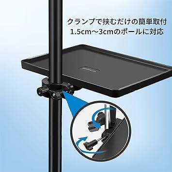 【調整可能】クランプの直径が1.5cmから3cmまで調整可能で、様々なスタンドに対応。