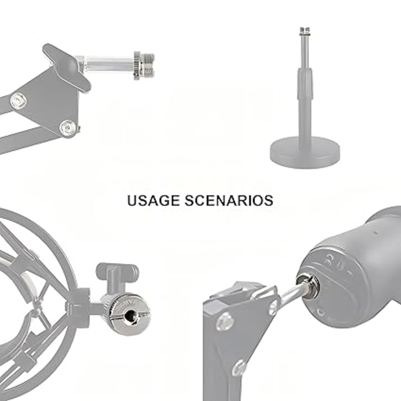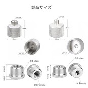 マイクスタンドの2種類ネジ: マイクスタンドのネジ規格は2つある、1/4オス→5/8メスジアダプター(4個)、3/8オス→5/8メスジアダプター(4個)。これらのネジはほとんどのマイクスタンドに適しており、部品の破損や紛失の問題を解決するのに役立ちます。