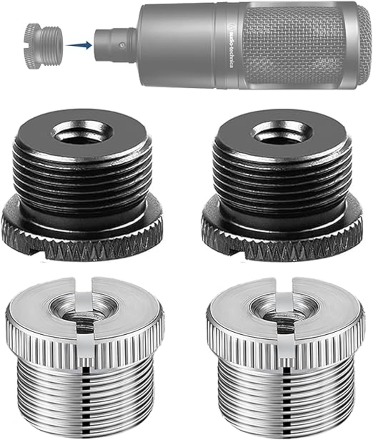 Selinear マイクネジアダプター カメラネジ変換アダプター 1 /4"メス-5/8"オス アダプター 4個セット アルミニウム合金製 三脚 マイクスタンド用撮影補助ツール (ブラック+シルバー) a | PCBASE