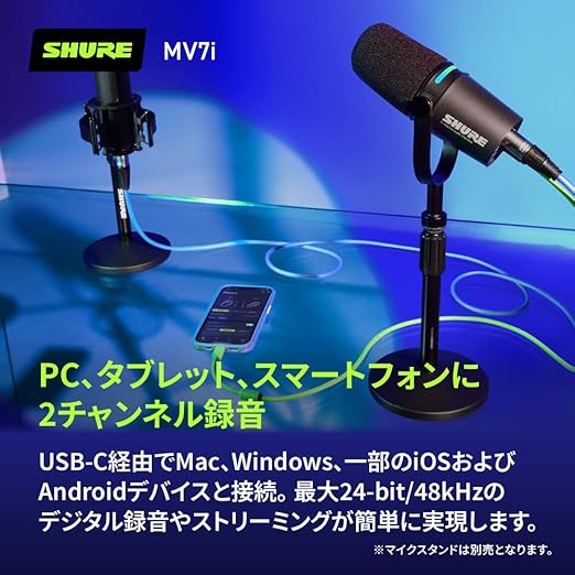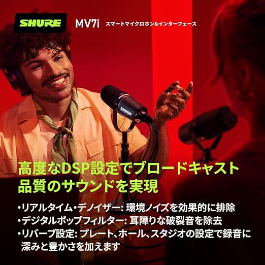 SHURE シュア MV7i ダイナミックマイクロホン & オーディオインターフェース ブラック MV7I-J : 2チャンネル対応 最大60dB+ ゲイン 出力 : USB-C 入力 : XLR 6.3mm フォーン ノイズ除去 配信 録音 レコーディング 音楽 楽器演奏 DTM 宅録 ポッドキャスト iOS Android Mac Windows対応 【国内正規品/メーカー保証2年】 a