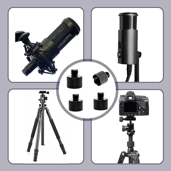 マイクスタンドアダプター (4個入り)(黒)5/8メスから3/8オスねじと1/4メスから5/8オスアダプターセット 変換ネジアダプター 固定ネジアダプター アルミニウム合金 マイクアームスタンド、カメラ三脚に最適 a | PCBASE