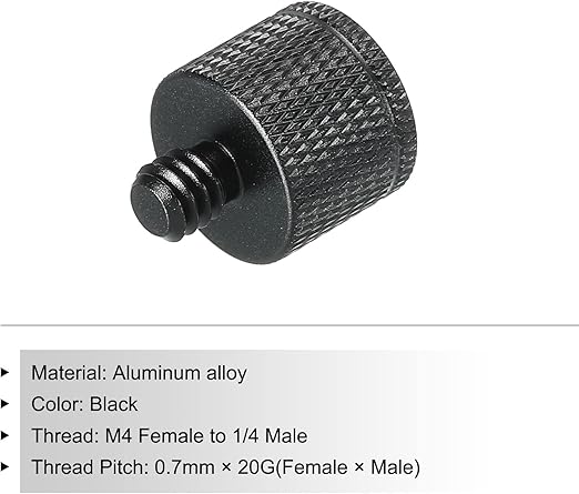 ここで提供するカメラのネジスレッドは、次のサイズです。材料:アルミニウム合金; カラー:ブラック; 体の高さ:13 mm; ねじ:M4メス x 1/4オス; ねじピッチ :0.7 mm x 20G(メス x オス);合計サイズ:16 mm x 20 mm(D*H)