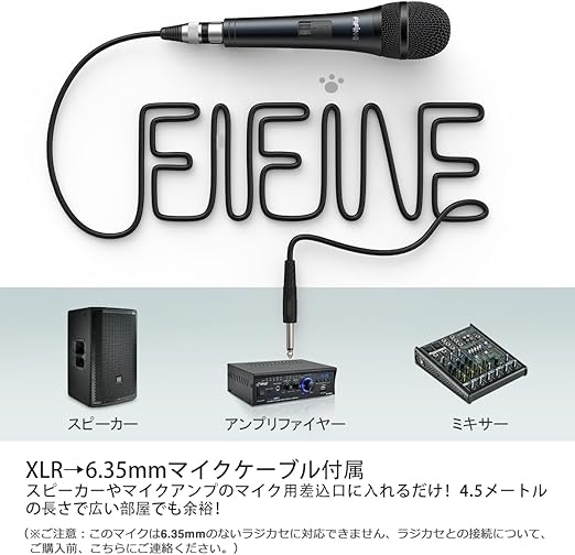 FIFINE マイク ダイナミックマイク ボーカルマイク カラオケマイク 単一指向性 家庭カラオケ イベント スピーチ 会議 録音 6.35mmプラグ 長さ4.5m XLR マイクケーブル 付属 K6 a | PCBASE