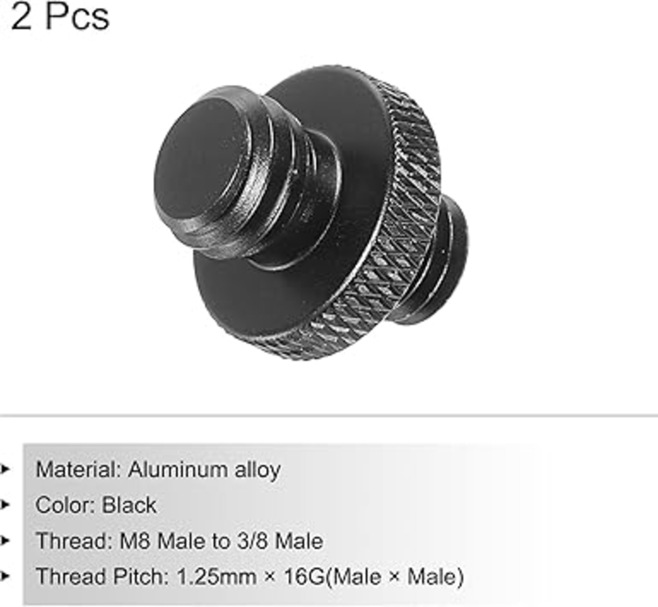 カメラのネジサイズ:材質:アルミ合金;カラー: ブラック; ねじ: M8オス-3/8オス;合計サイズ:16 mm x 18 mm (D*H)