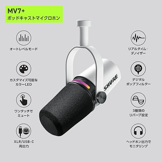 SHURE シュア MV7+ ポッドキャストマイクロホン ホワイト MV7+-W : OBS 認証 ダイナミックマイク カーディオイド 単一指向性 USB-C XLR 有線 ノイズ除去 配信 ストリーミング YouTube 録音 レコーディング 音楽 実況 ゲーム ゲーミング ボーカル DTM 宅録 テレワーク iOS Android Mac Windows対応 【国内正規品/メーカー保証2年】 a | PCBASE