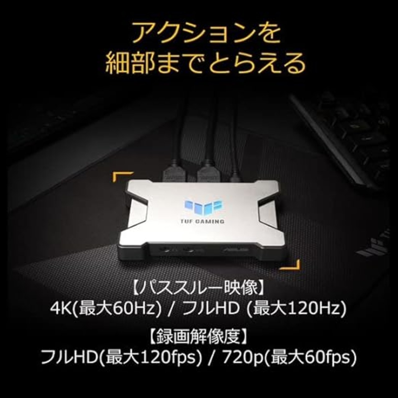 ASUS ゲームキャプチャーボックス TUF GAMING CAPTURE BOX-FHD120 1080p / 120Hz / ゲーム実況 録画 配信 会議 向け/ウェブカメラ PS5 Switch Mac Windows/OBS公式承認モデル / USB3.2 / ボイスチャット録音機能 a | PCBASE
