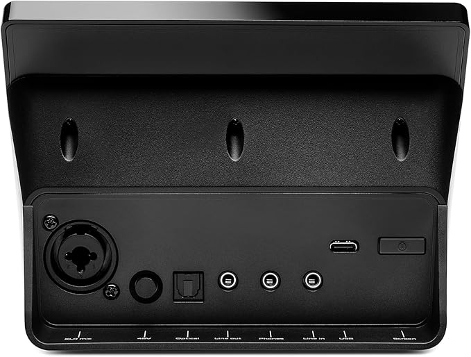 1つのヘッドセット出力、1つのXLRマイク入力、1つの光コネクター、1つのライン入力ポート、1つのライン出力ポート