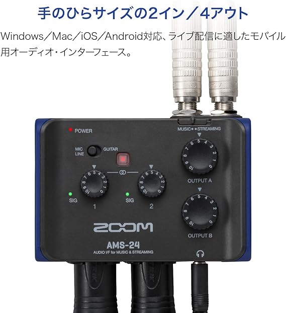 ZOOM ズーム AMS-24 オーディオインターフェース ブラック 2イン/4アウトUSB-Type-C 小型 DTM 音楽制作 ライブ配信用 Windows/Mac/iOS/Androidに対応 手のひらサイズ 音声をステレオミックスして配信可能 a | PCBASE