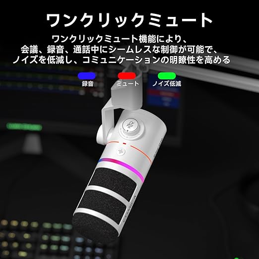 【48kHz/24bitプロ音質&ノイズキャンセリング】この単一指向性ダイナミックマイクは、48kHz/24bitの高品質なオーディオを提供します。広い周波数帯域で音を再現し、微弱な音も繊細に捉え、明瞭に再現します。大型ダイアフラムダイナミックマイクカプセルを搭載し、騒がしい環境でも、正面の音源を精密に捉え、雑音を最小限に抑えるため、ゲームプレイやストリームに没頭することができます。さらに、独自開発のCalMixノイズキャンセリングアルゴリズムを搭載し、ワンタッチで環境ノイズを除去。人の声を正確