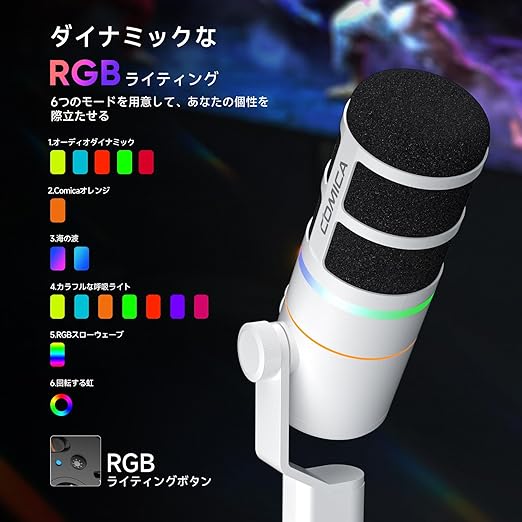 Comica ダイナミックマイク USB/XLRデジタルとアナログデュアル出力 ゲーミングマイク 単一指向性 ブームアーム付き RGBライティング ノイズ軽減 ライブ配信 ゲーム実況 在宅勤務 ポッドキャスト ストリーミング ナレーション録音に最適 PC/PS4/PS5/サウンドカード/オーディオミキサー対応 EJoy D10(白) a | PCBASE