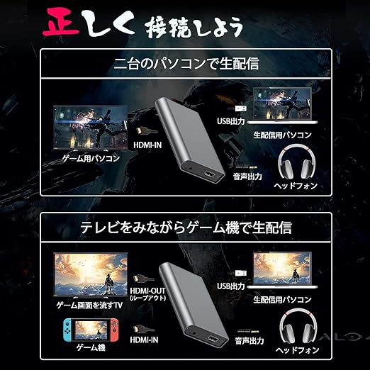 【HDMIパススルー機能】HDMI入力映像を遅延無しにパススルー出力できるため、遅延の影響を気にせずゲームをプレイしながら録画/配信ができます。