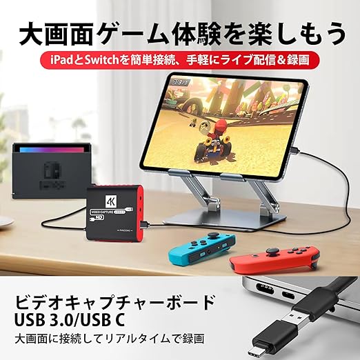 キャプチャーボード USB3.0 & YUY2サポート、1080P 60FPSビデオ録画対応 Switch/PS5/PS4/Xbox/WiiUなどのゲーム機対応、4K@30Hzパススルー & 5Gbps超低遅延 高速転送対応 - OBS、Twitch、XSplit、Potplayerなどの配信ソフト対応 - Mac/Windows/Linux/Android/iPad OS17対応 a | PCBASE