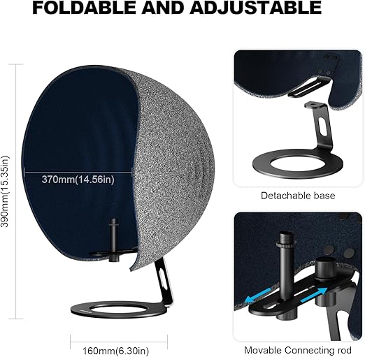 これはAOKEOの2024年の最新スタジオデバイスです。マイクを360°取り囲むことができ、従来の防音カバーに比べて優れた防音効果を提供します。98%のノイズを除去するのに役立つモバイルスタジオです。AOKEOのpopフィルタと併用するとより効果的です。注:マイクは含まれていません。