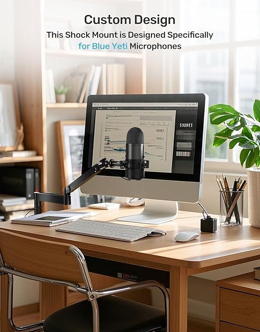 【2025年最新モデル】Yetiマイクロホンのためにカスタム設計されたショックマウントを使用し、片持ちスタンドに接続することで、マイクロホンを周囲のノイズから隔離することができ、ポストプロダクションの時間を短縮し、より良いボイスキャプチャ結果を提供します。