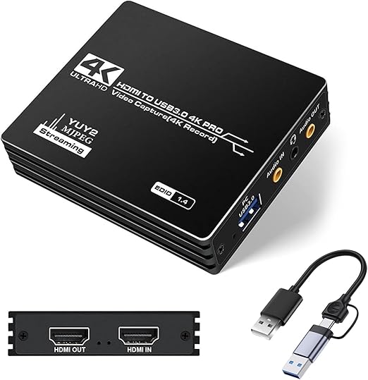 C.CURTING 4K@60Hz HDMI キャプチャーボード 4K録画対応キャプチャーユニット YUY2フォーマットをサポート USB3.0 60FPS ゲームキャプチャー ビデオ フルHD ビデオキャプチャー 内蔵 ゲーム実況生配信、会議、ライブビデオ配信、画面共有、録画に適用 Nintendo Switch、Xbox One、OBS Studio対応 a | PCBASE