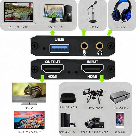 キャプチャーボード Switch対応 4K HDMI パススルー 機能を搭載しています 1080P 60Hz ビデオキャプチャー USB3.0高速伝送 低遅延 ゲーム実況生配信ライブ、ビデオ会議録画、リアルタイムストリーミング 画面共有 PS5/PS4/Xbox/Wiuに 対応 PC/Mac/Windows 11/ Linux/Android/iPad OS18に適用 a | PCBASE