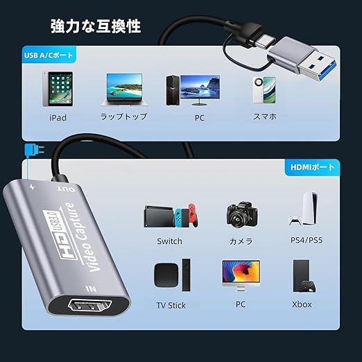 USB3.0 ビデオキャプチャカード 100W PD HDMI - USB/USB C 4K1080P HD 60fps ライブおよび録画ビデオオーディオゲーム MS2130 Quest 3 VR Switch PS4/5 ライブブロードキャスト、ゲーム、ストリーミング a | PCBASE