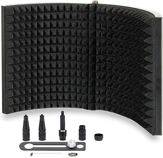 ブースの利点:当社のマイクシールドの2枚の折りたたみパネルは簡単に調整可能で、最適な音響遮断に向けて角度を調整するだけ