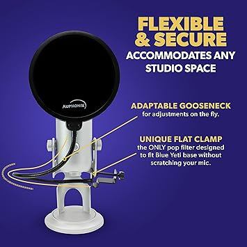 【Blue Yetiにネジを締めるだけで簡単取付】 一般的なポップガードと違いBlue Yetiマイク用に設計。Yetiスタンドの内側、外側または机やマイクスタンド(平面部分)にも簡単にお取付できます。「Auphonix」は米国で多くの動画、音楽クリエイター様から支持を得ているマイク関連機器メーカーです。