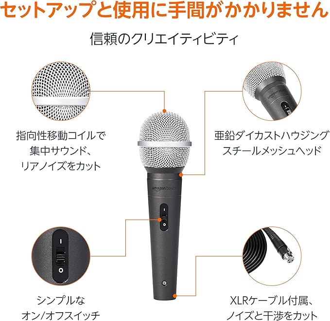 ボーカル増幅用のダイナミックカーディオイドマイク。