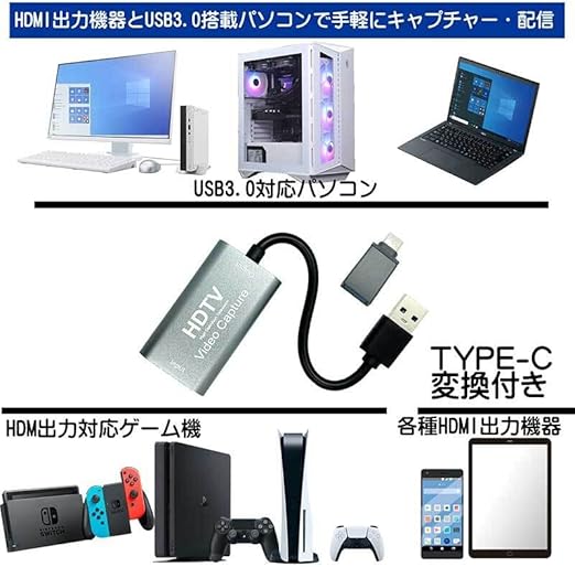 対応ソフトウェア:OBS、ZOOM、Google meet、Amcap、VLCほか USBビデオUVC/USBオーディオUACに対応したソフトウェアで動作します。