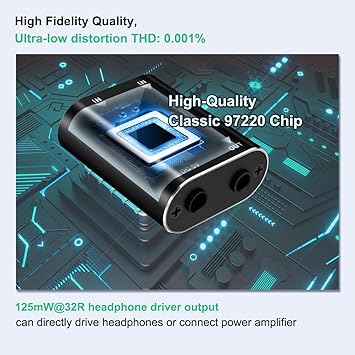 【2チャンネルミキサー、ハイファイ再生】この3.5mmインターフェースオーディオミキサーは、2つのチャンネルからのステレオ音声を1つのチャンネル出力に統合します。クラシックな97220チップを採用し、ヘッドフォンアンプの出力は最大125mW(@32オーム)で、THD(全高調波歪)は0.001%と超低歪みレベルを誇ります!