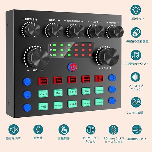 オーディオインターフェース オーディオミキサー カラオケセット家庭用 ボイスチェンジャー ミキサー オーディオ DJ サウンドカード 人気ランキング 配信機材 V8 Sound Card 男声 女声 子供の声 ロボット音 楽器Phone iPhone iPad PC用 Stream YouTube Facebook Tiktok生放送 日本語説明書付 a | PCBASE