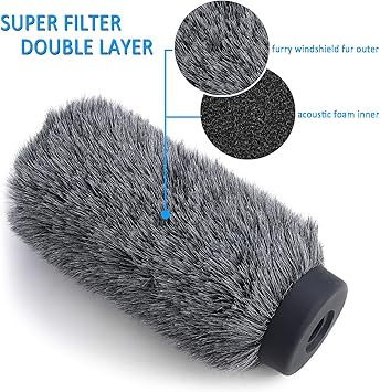 プロフェッショナルなウィンドスクリーン - 毛皮のようなウィンドマフは、あなたのロードNTG2、NTG3無音ハイザーMKH416ショットガンマイク、および180mm(7.1」)の最大スロット長と18-24m. "の直径を持つ任意の散弾銃マイクに適合します WS7 ウィンドシールド
