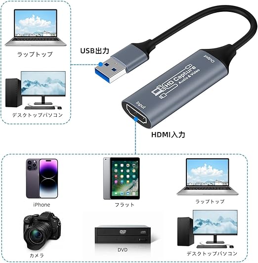 キャプチャーボード switch対応 USB HDMI 変換アダプタ HD画質1080P/4Kパススルー機能 HDMI ビデオキャプチャー ゲーム/ビデオ録画/ライブ配信用キャプチャー ボード 電源不要 小型軽量 低遅延 PS5/PS4/PS3/PC用録画サポート PC/Windows/Linux/OBS/Potplayer/YouTube 対応 a | PCBASE
