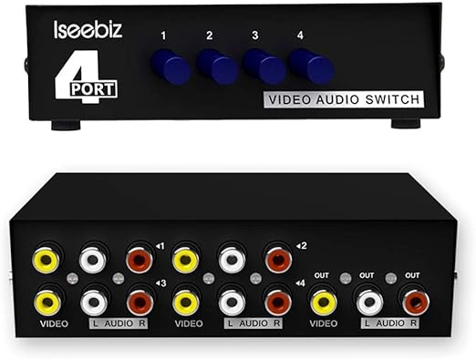 Iseebiz AVセレクター RCA切替器 4入力1出力/1入力4出力 双方向対応 電源不要 金属外殻 オーディオ・ビデオセレクター ビデオデッキ/DVD/レトロゲーム機対応 干渉防止 a | PCBASE